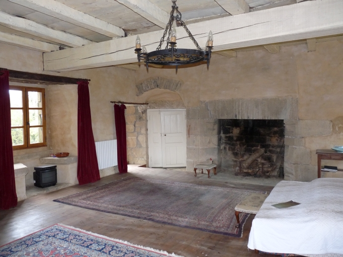 Logis-porte, chambre haute, porte d'accès à l'escalier de la tour, fenêtre sud et cheminée du mur ouestImmatriculation