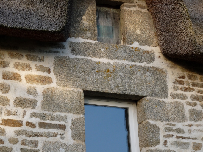 Logis neuf, élévation sud, détail inscription sur la fenêtre de l'étageImmatriculation