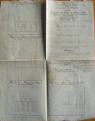 Construction d'une mairie-école. Esquisse de projet d'une maison d'école par Lussault, 1840 (AD Morbihan, 2O169/1421)Immatriculation