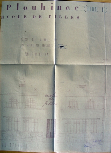 Construction d'une mairie-école. Elévation de l'école, par Jules Bardet, 1938 (AD Morbihan, 2O 269/1420)Immatriculation