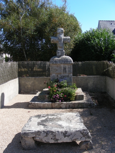 Rue de la croix. Croix 17e siècle sur socle formé d'un polissoir remployéImmatriculation