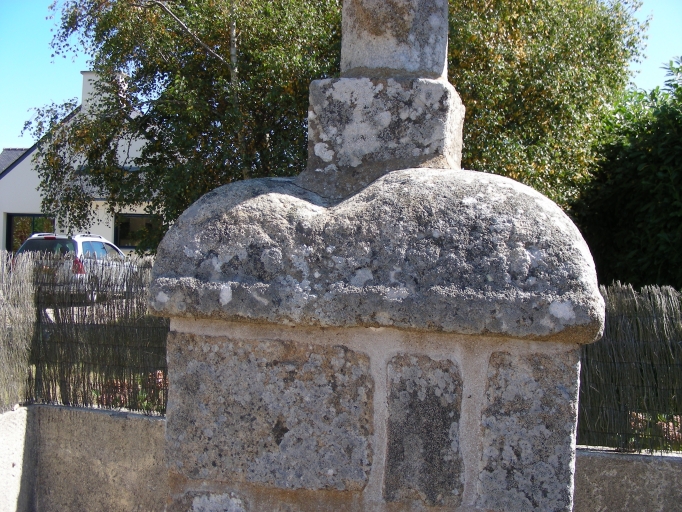 Plouhinec, rue de la croix : croix de chemin dont le socle est formé d'un polissoir en remploiImmatriculation