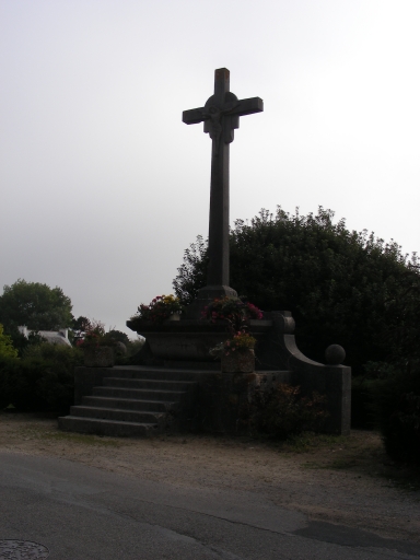 Locquénin, rue du presbytère, croix de mission, vers 1930Immatriculation