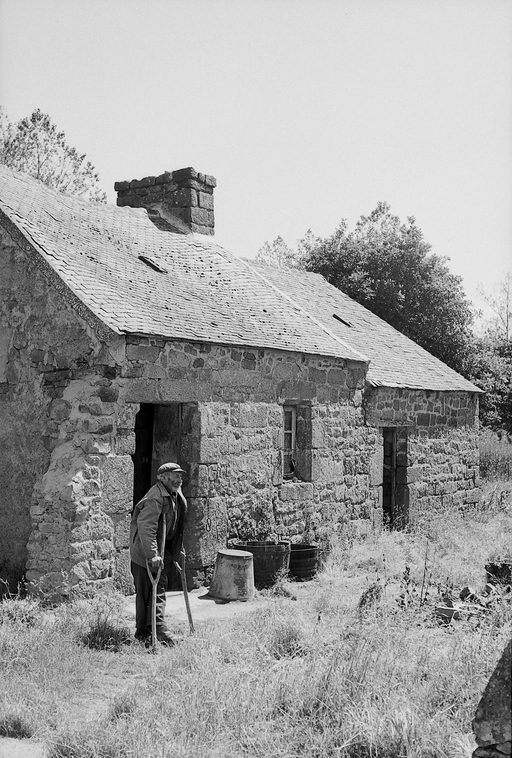 Trégrom, Crec'h Allic : logis de ferme et dépendance, photographie de 1972. Porte et fenêtre comportent des piedroits chanfreinésImmatriculation