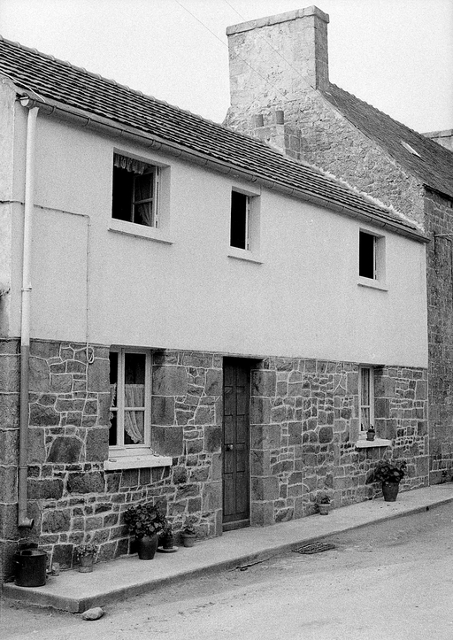 Trégrom, le bourg, au sud de Ker Sant Anton : ferme devenue maison à étage, photographie de 1972. La deuxième porte a été bouchéeImmatriculation