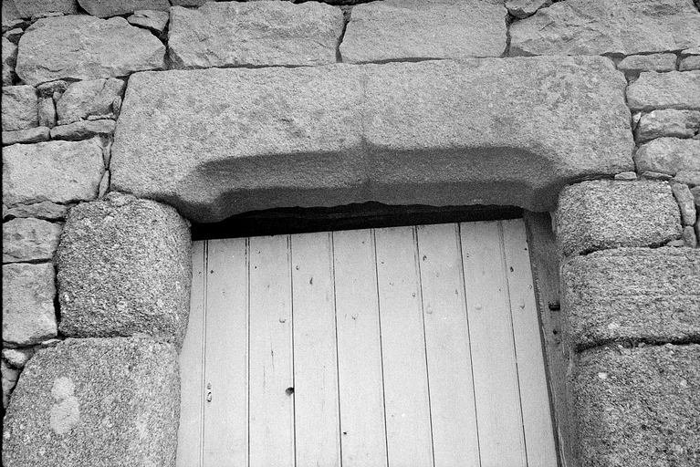 Trégrom, Kerstun : alignement de 2 logis, détail du linteau à accolade de la porte du logis de gauche, photographie de 1972Immatriculation