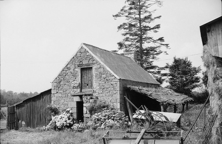 Trégrom, Keranoc'h : grange, photographie de 1972. Un escalier en pierre permet d'accéder aux comblesImmatriculation