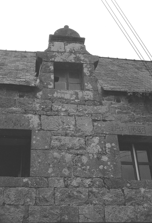 Vue de l'élévation antérieure orientée vers l'est : détail de la lucarne, photographie de 1972Immatriculation