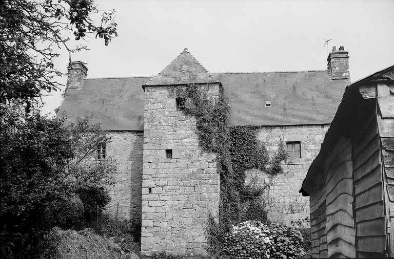 Vue de l'élévation postérieure orientée vers l'ouest, tour d'escalier de plan carré, photographie de 1972Immatriculation