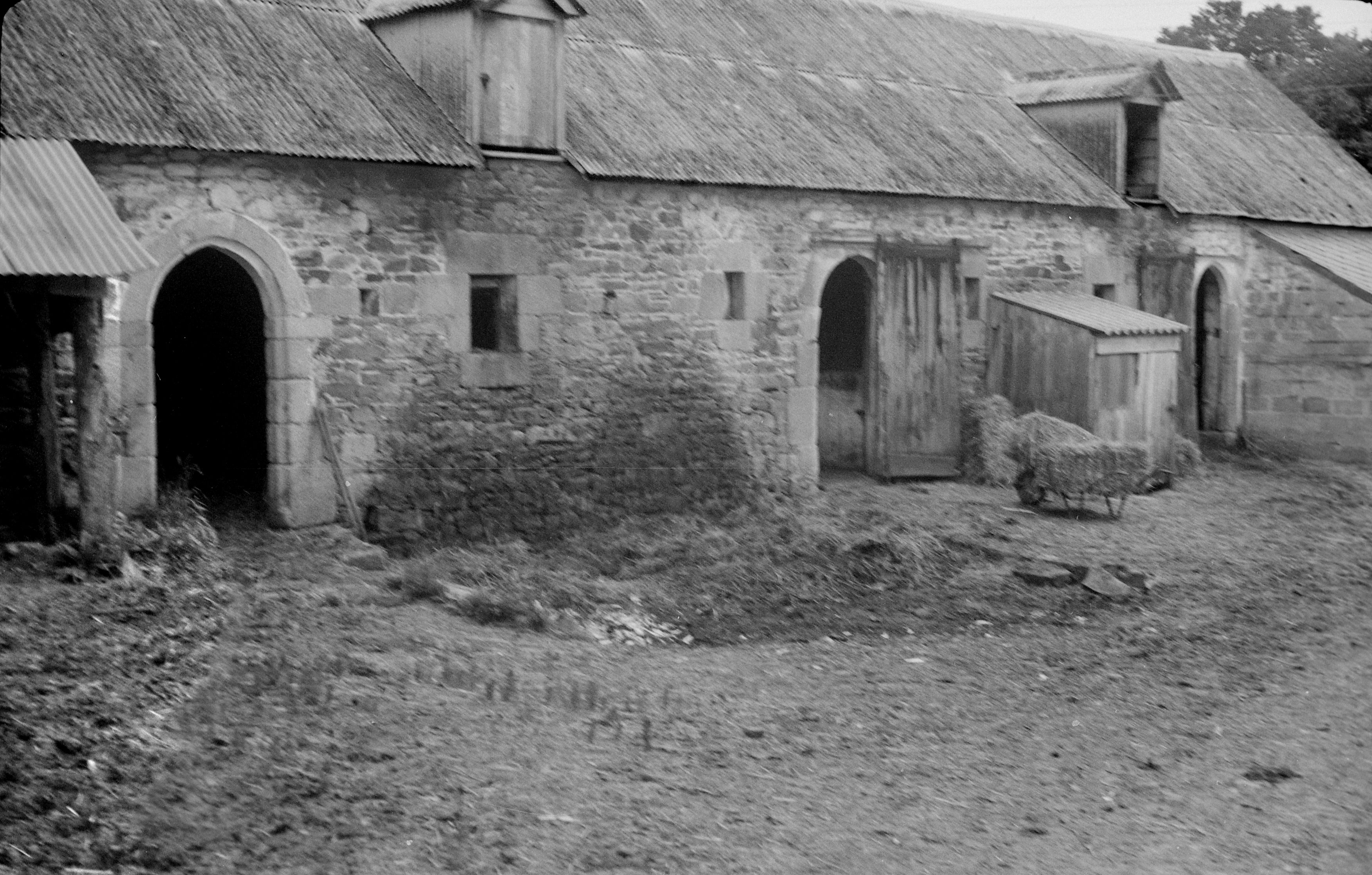 Ploubezre, Ker Arzel : étable datable de la première moitié du 19e siècle remployant des éléments anciens (portes en arc brisé), photographie de 1969Immatriculation