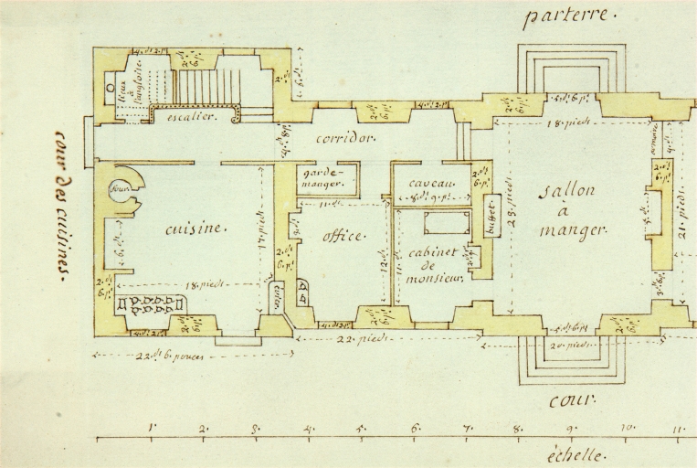 Plan du rez-de-chaussée, partie ouest, par le commandeur de Brilhac, 1773Immatriculation