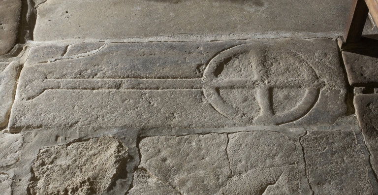 Vue intérieure, dalle funéraire, dans la nefImmatriculation