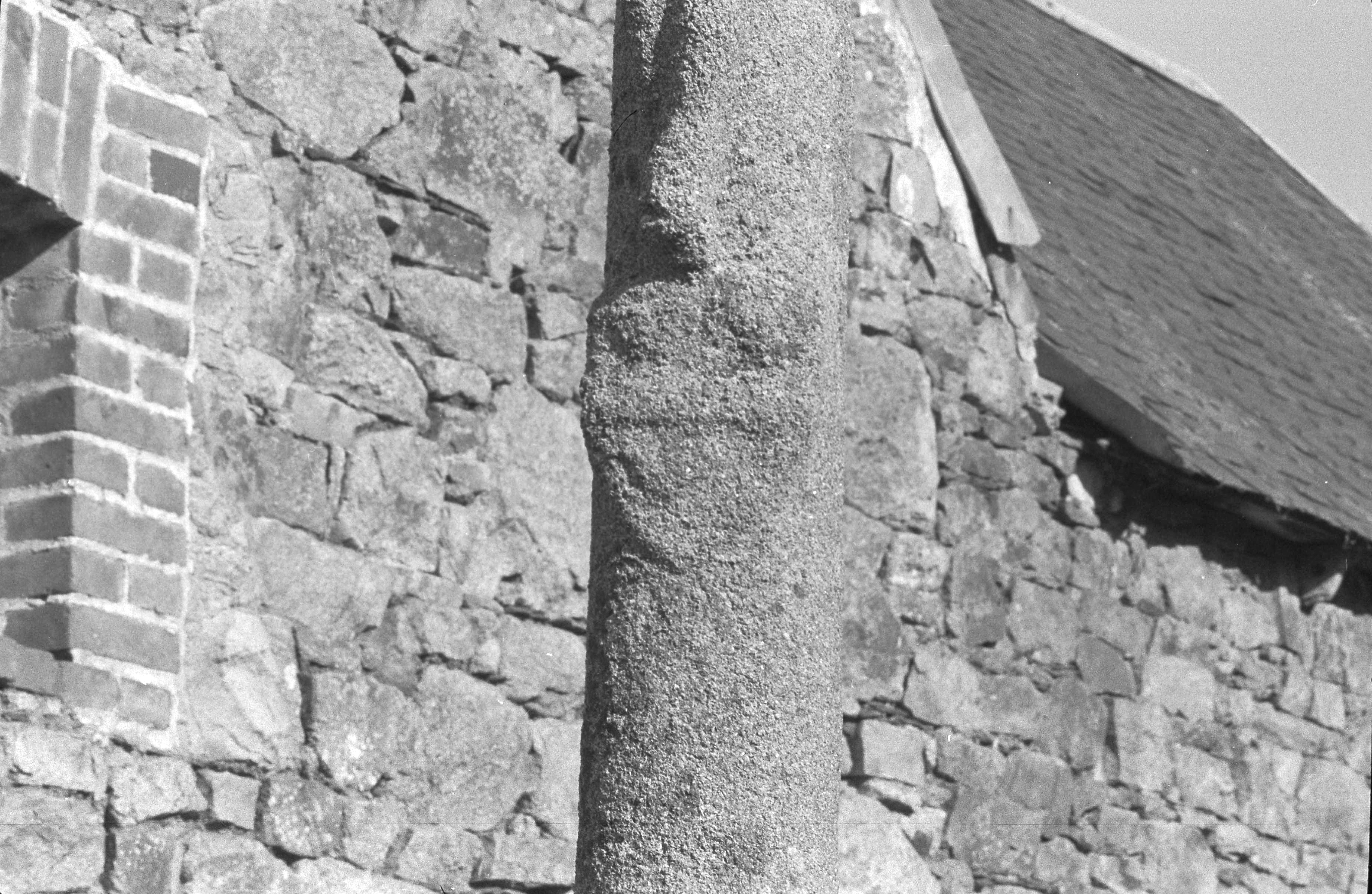 Kermaria-Sulard, le bourg : croix dite du Pavé (détail des armoiries à trois annelets), ancienne photographie (1969-1975)Immatriculation