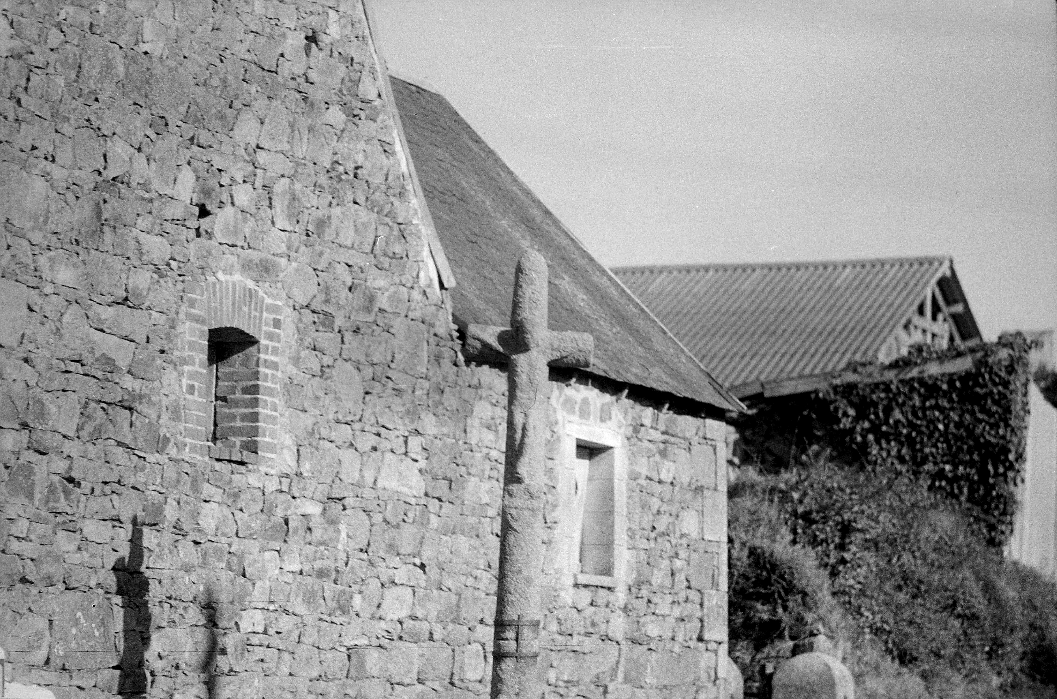Kermaria-Sulard, le bourg : croix dite du Pavé (Christ en croix), ancienne photographie (1969-1975)Immatriculation
