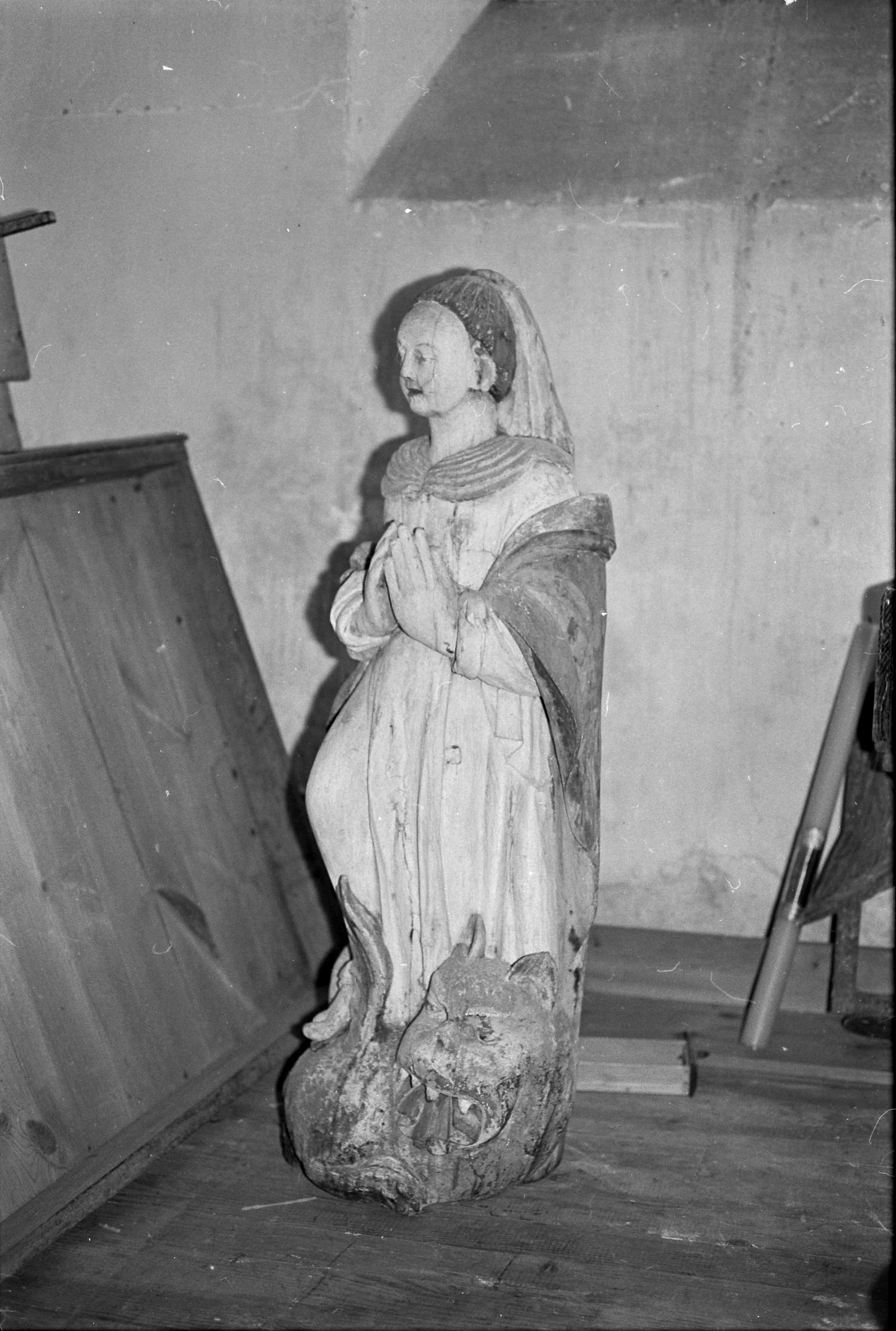 Kermaria-Sulard, le bourg : église paroissiale Notre-Dame-de-la-Joie, sainte Marguerite (profil), ancienne photographie (1969-1975)Immatriculation