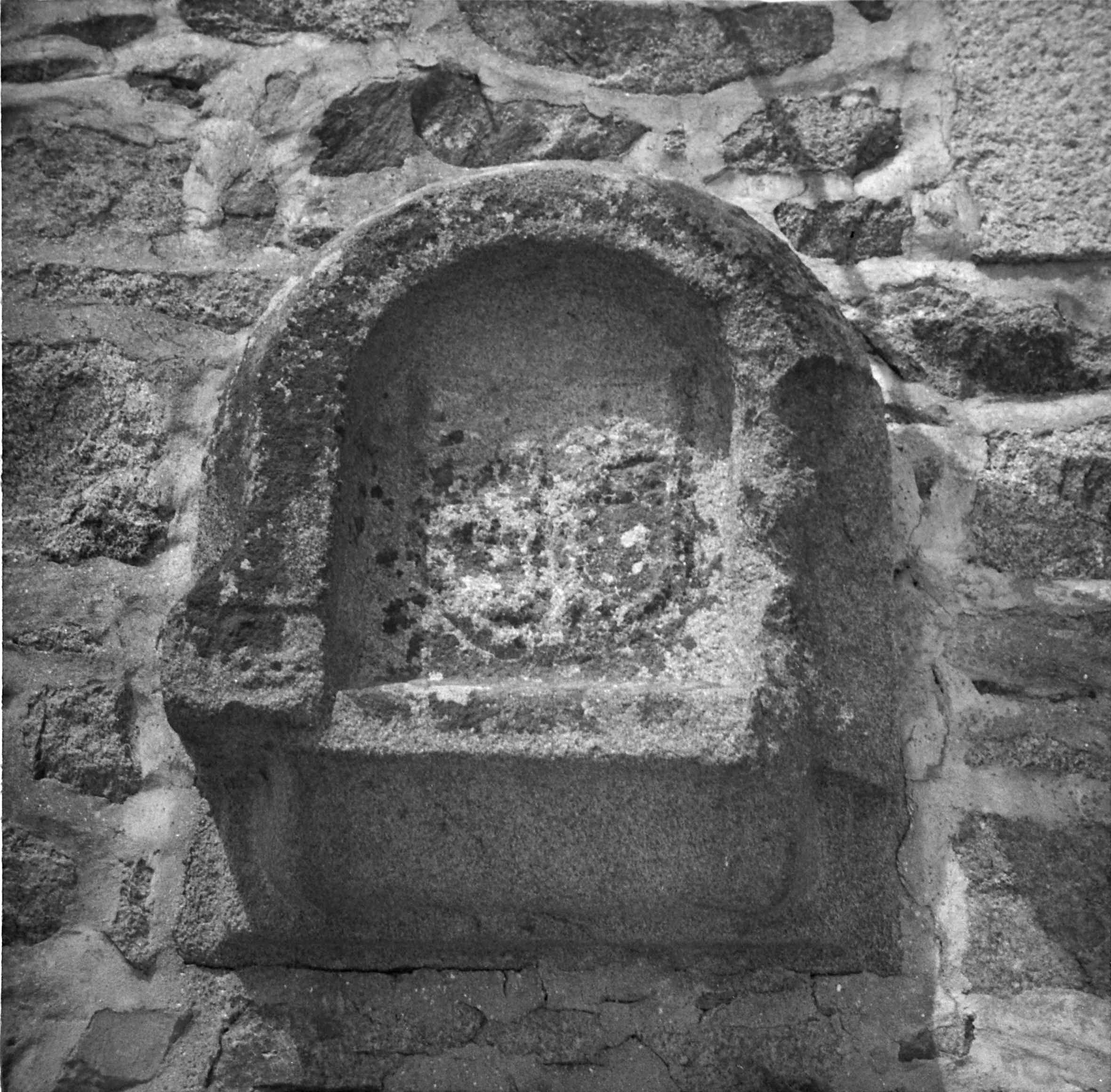 Kermaria-Sulard, Kergoff : ferme datée 1841, détail des armoiries du manoir, ancienne photographie (1969-1975)Immatriculation