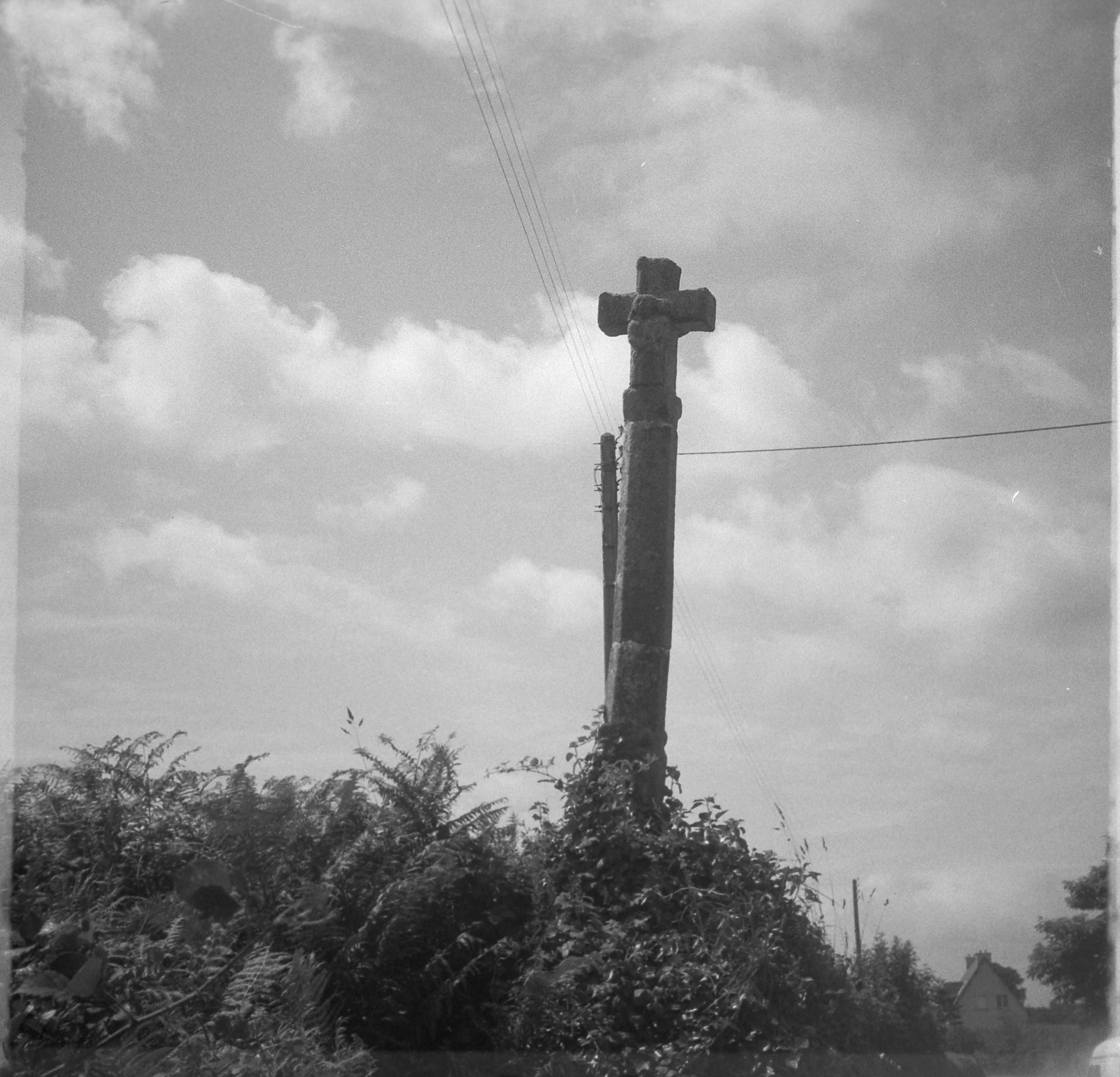 Kermaria-Sulard, Kerhuel : croix de chemin, Vierge à l'enfant, ancienne photographie (1969-1975)Immatriculation