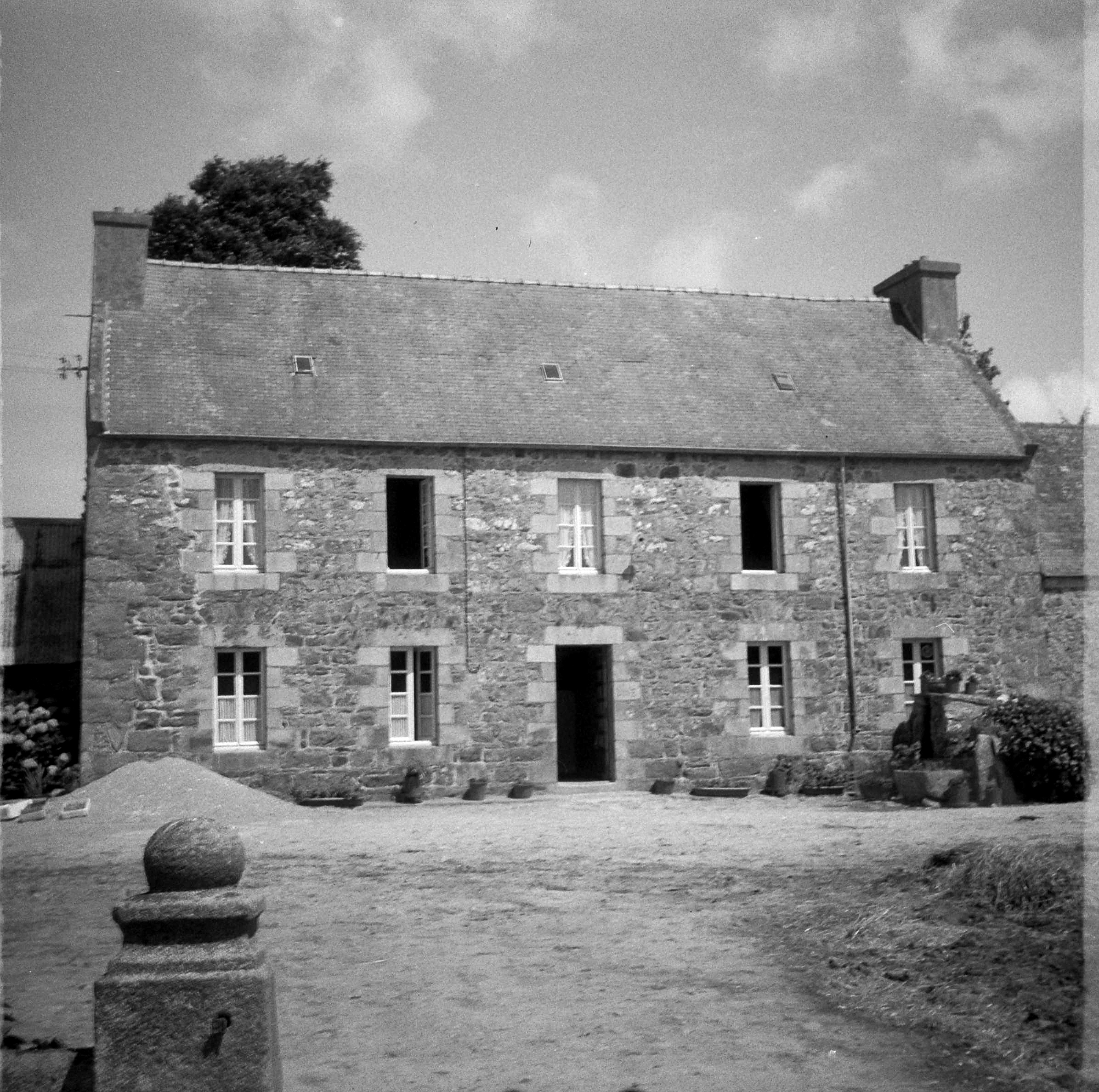Kermaria-Sulard, Kerès : logis de la ferme daté 1837 (type ternaire à cinq travées d'ouverture), ancienne photographie (1969-1975). Sur le linteau de la fenêtre, on peut lire : "FREM - LISSUEUR / W QUEFFELOU / EPOUSE 1837"Immatriculation