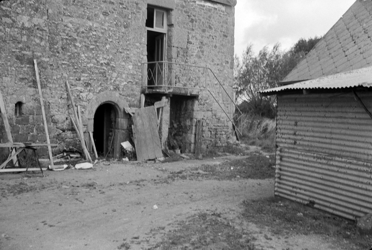 Lanvellec, le bourg : manoir, élévation antérieure, détail (fenêtre transformée en porte haute), photographie de 1974Immatriculation