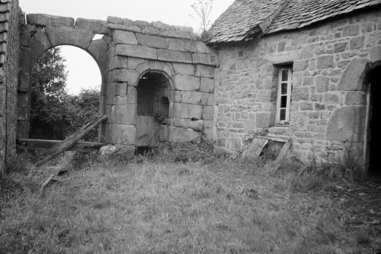 Lanvellec, Run ar Léjou : ferme, façade postérieure de la porte charretière et de son puits, photographie de 1969Immatriculation