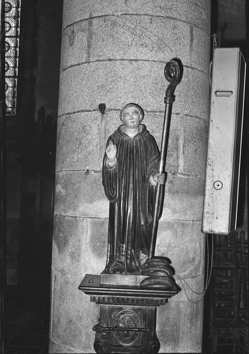 Loguivy-Plougras, le bourg : église paroissiale Saint-Emilion, statue, photographie de 1969Immatriculation