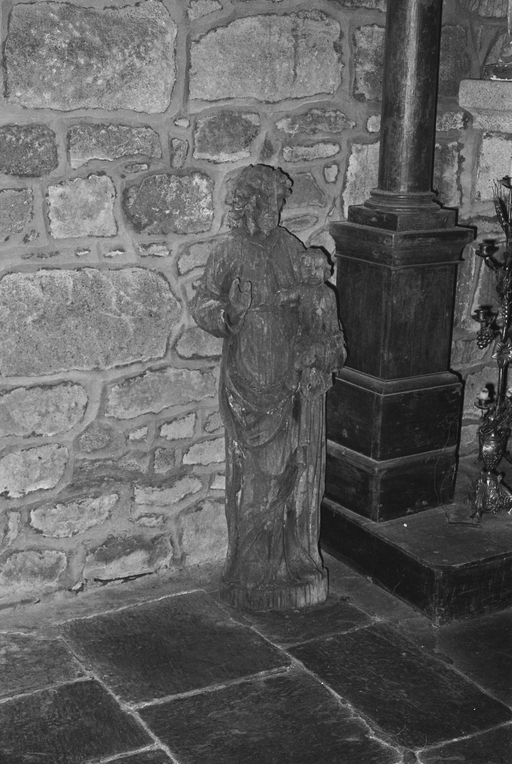 Loguivy-Plougras, le bourg : église paroissiale Saint-Emilion, statue, photographie de 1969Immatriculation