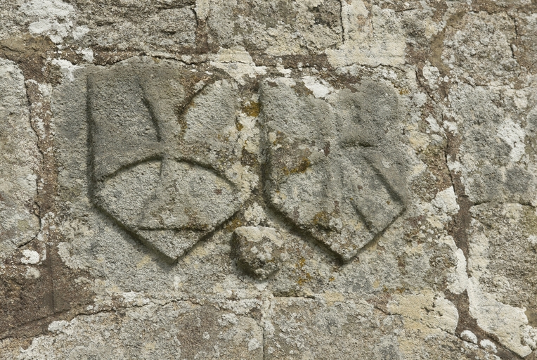 Loguivy-Plougras, Trogorre : la chapelle Saint-Yves, élévation ouest, vue de détail des armoiriesImmatriculation
