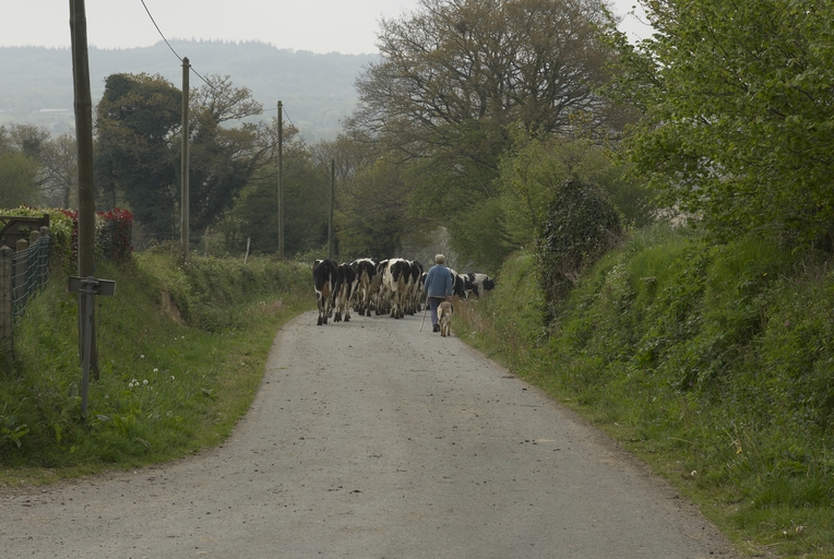 Loguivy-Plougras, Kervélo : vue du troupeau de vaches laitières sur la routeImmatriculation