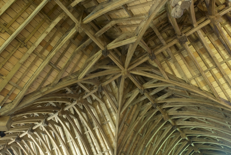 Loguivy-Plougras, le Dresnay : la chapelle Notre-Dame, vue de détail de la charpente à la croisée des transeptsImmatriculation