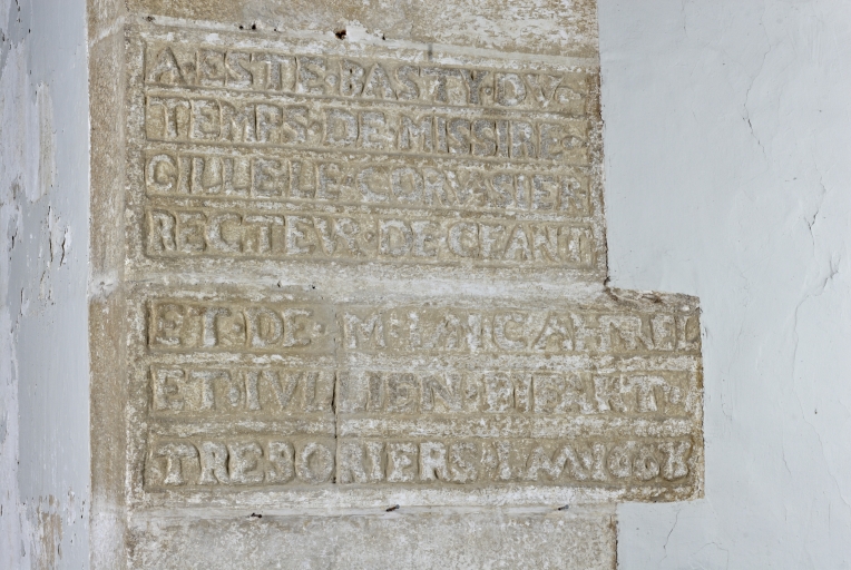 Bas côté nord, pierre de dédicace datée de 1668Immatriculation