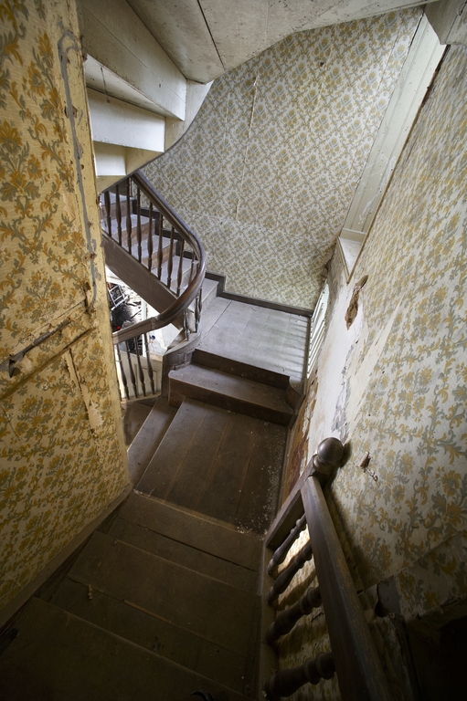 Loguivy-Plougras, Saint-Divy : ancien presbytère, premier étage, vue de l'escalierImmatriculation