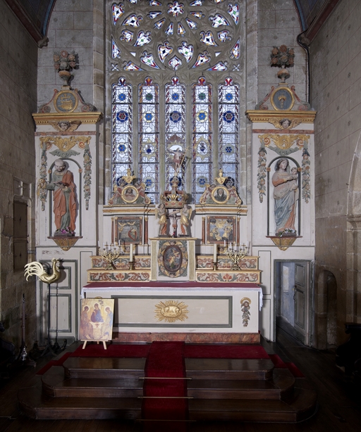 Plounévez-Moëdec, le bourg : église paroissiale Saint-Pierre, vue intérieure, maître-autelImmatriculation