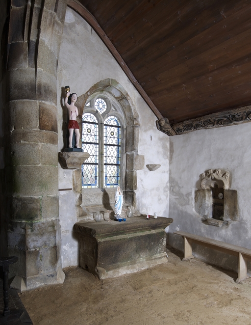 Plounévez-Moëdec : chapelle Sainte-Jeune, vue de l'autel secondaire sudImmatriculation