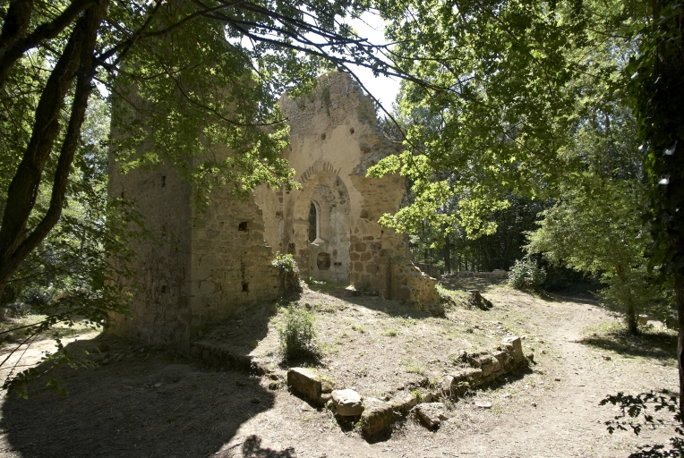 Vue prise du nord, vestiges de la sacristie accolée au mur nord du choeurImmatriculation