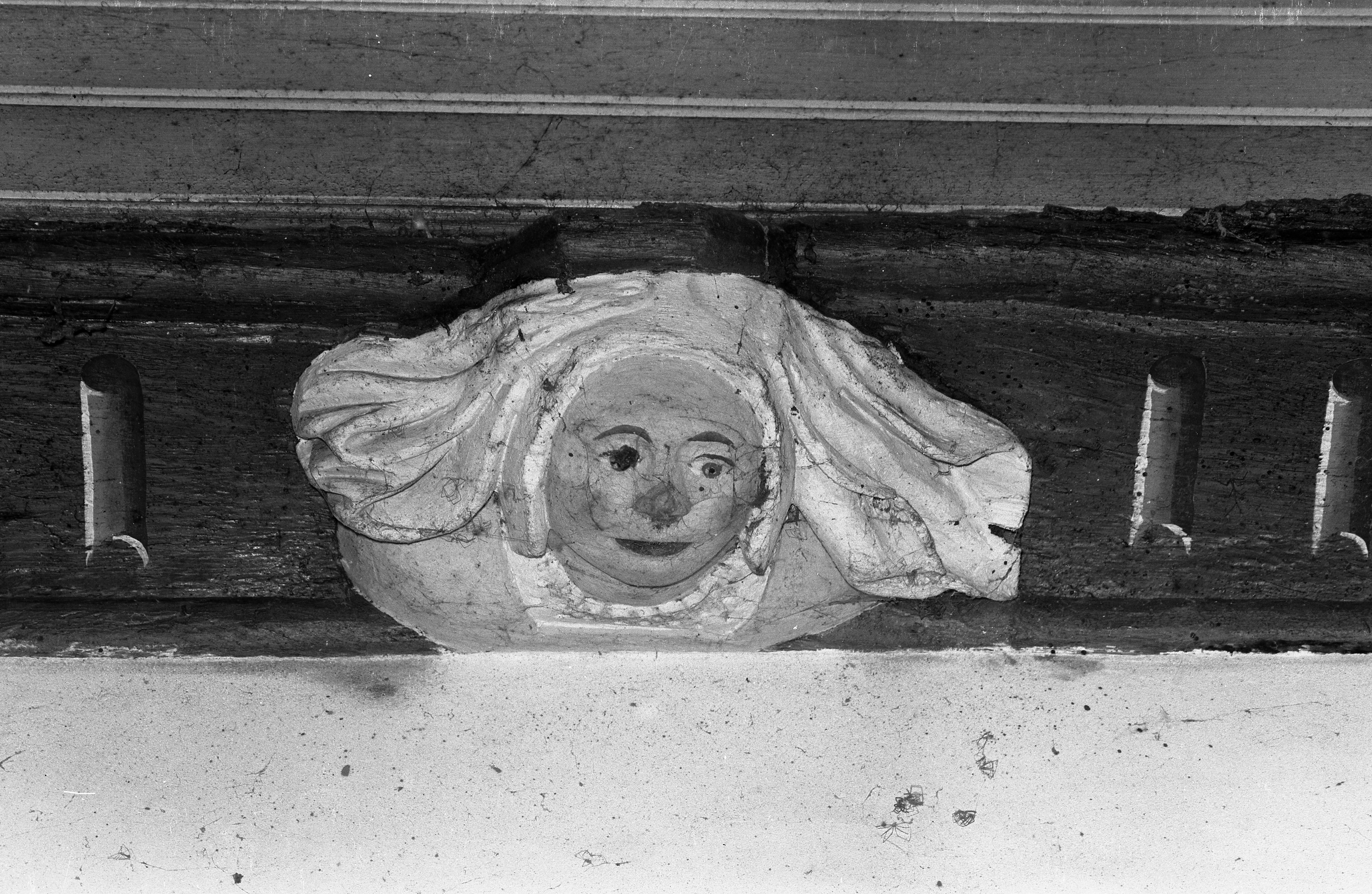 Ploubezre, chapelle de Kerfons : vue intérieure, détail de la sablière sculptéeImmatriculation