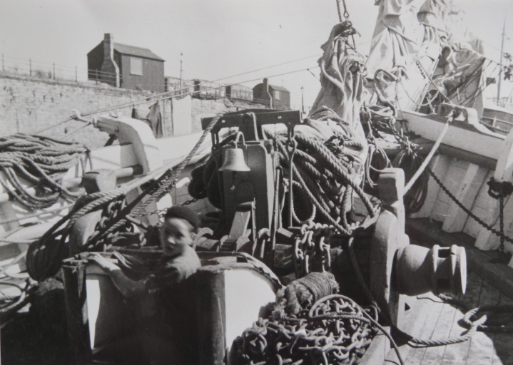 Pont avant d'une goëlette de cabotage avec le guindeau à brinquebales (collection particulière)Immatriculation