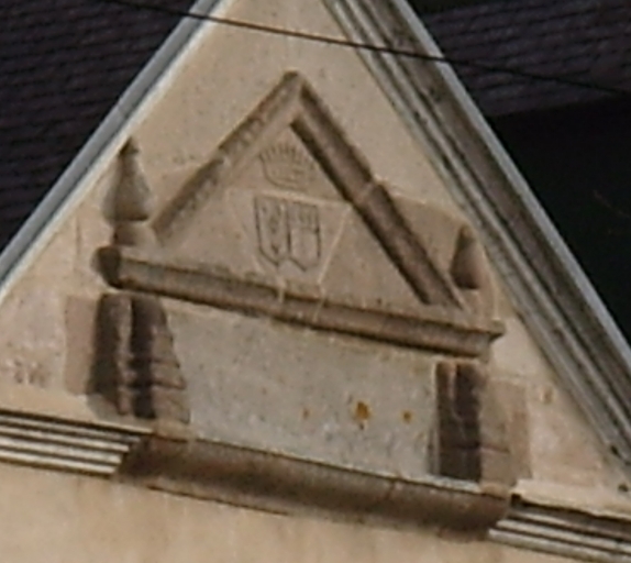 Pignon axial architecturé portant les armes des commanditaires du logisImmatriculation