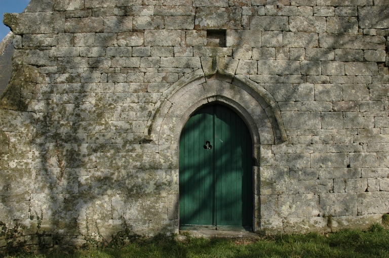 Mur-pignon occidental, porte à arc brisé surmontée d'une archivolte en accoladeImmatriculation
