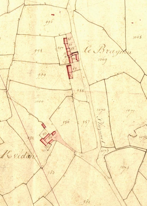 Extrait de la feuille A2 du cadastre ancien de la commune de Trégrom, 1834 : Le BreignouImmatriculation