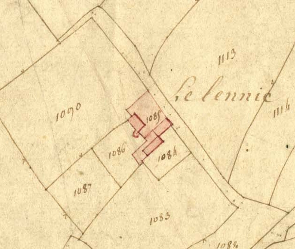Extrait de la feuille D2 du cadastre ancien de la commune de Trégrom, 1834 : le manoir du LennicImmatriculation