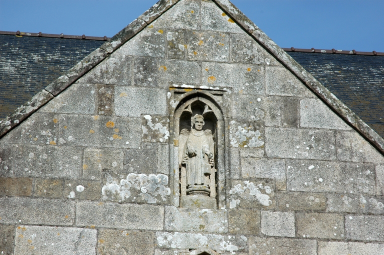 Vue de détail du porche sud : niche abritant une statue de saint BrandanImmatriculation