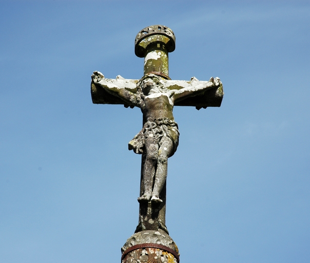 Vue de la croix de cimetière : détail de la croix sommitaleImmatriculation