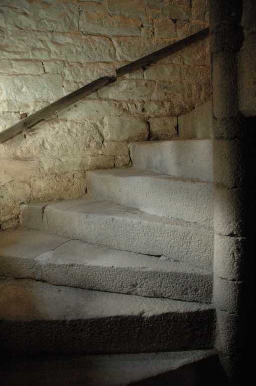 Vue intérieure : escalier en vis en granite de la tour (2010)Immatriculation