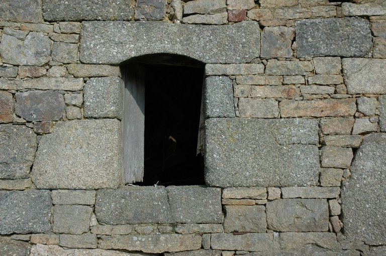 Ferme ouest (n° 1), élévation antérieure orientée vers le sud, fenêtre à linteau en arc segmentaireImmatriculation