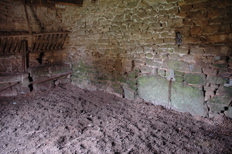 Logis puis étable, vue intérieure, mur ouest faisant face à l'entréeImmatriculation
