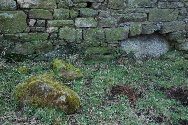 Logis puis étable, façade postérieure orientée vers l'ouest, détail des fondationsImmatriculation
