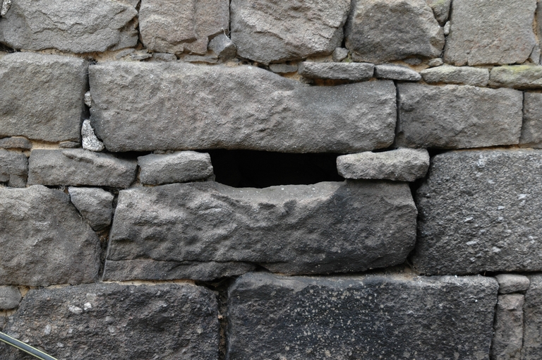 Etable aujourd'hui maison, élévation antérieure orientée vers le sud-est, détail. Il s'agit vraisemblablement d'un dispositif permettant de remplir une augeImmatriculation
