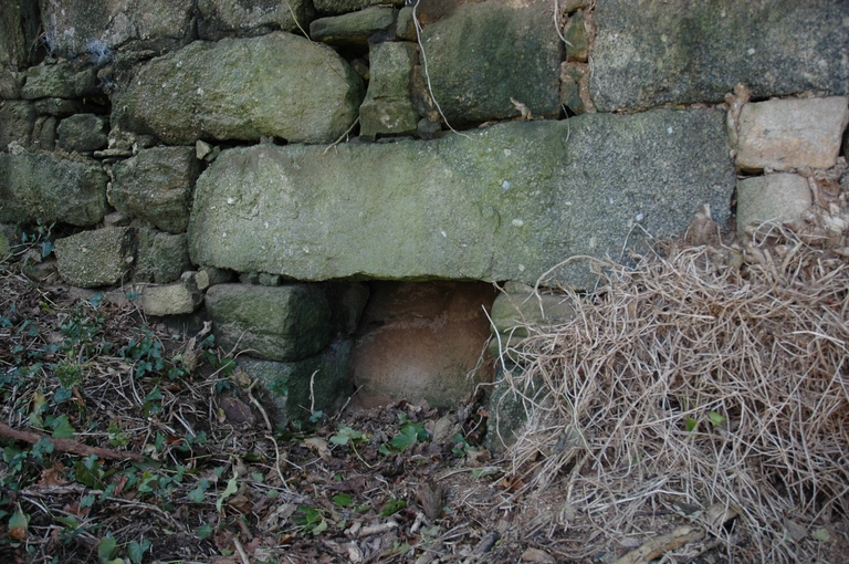 Vue de l'exutoire de l'évier donnant vers l'ouest (depuis l'extérieur)Immatriculation