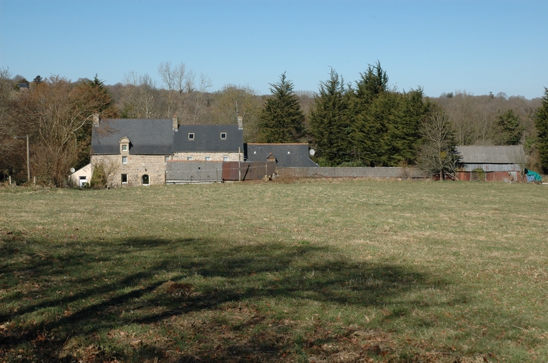 Vue de situation depuis le sud : alignement de deux logis, l´un - à l'est - est datable du 17e siècle mais a été remanié ; le second - à l'ouest - est daté par millésime de "1724"Immatriculation