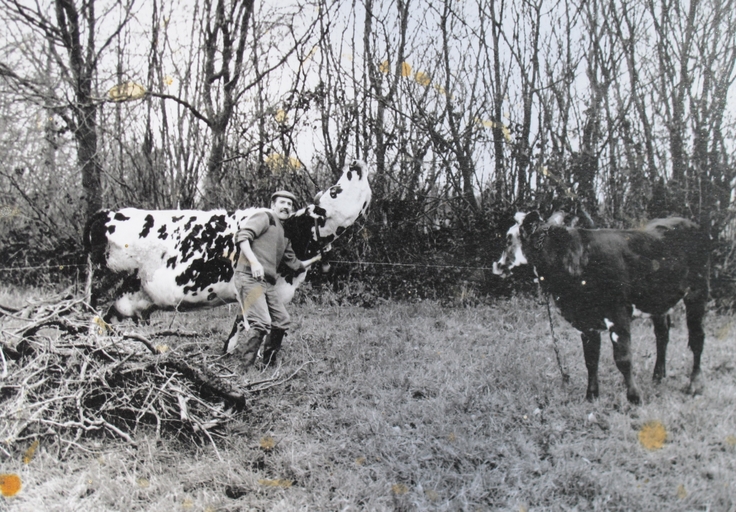 Illustration de la vie à la ferme : vache en pâture, ancienne photographie (collection du propriétaire)Immatriculation